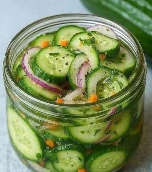The balance of vinegar, a touch of sweetness, and aromatic herbs transforms humble cucumbers into a refreshing dish you’ll want to make again and again. 🌿✨