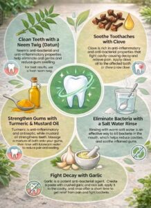 Combining traditional remedies with modern dental care is ideal: Regular check-ups with a dentist Fluoride toothpaste or natural alternatives Consistent