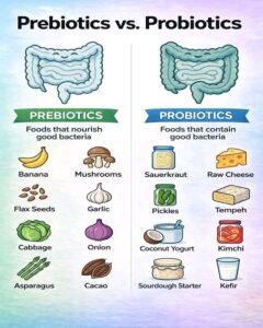 Think of it like this: Prebiotics = fuel for your existing gut bacteria Probiotics = new soldiers joining your gut