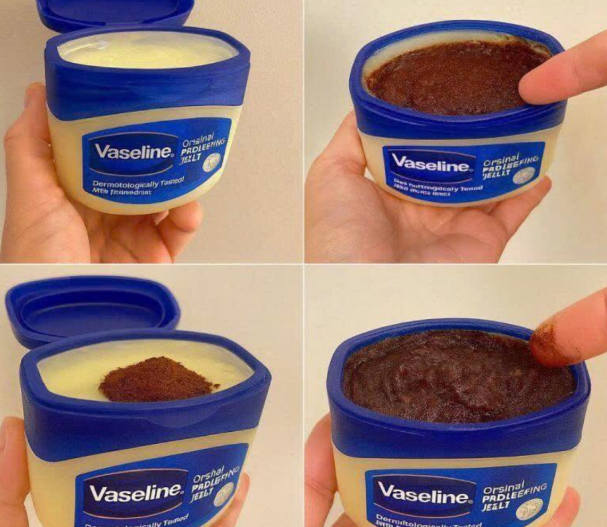 Mix 1 tsp coffee + ½ tsp Vaseline.